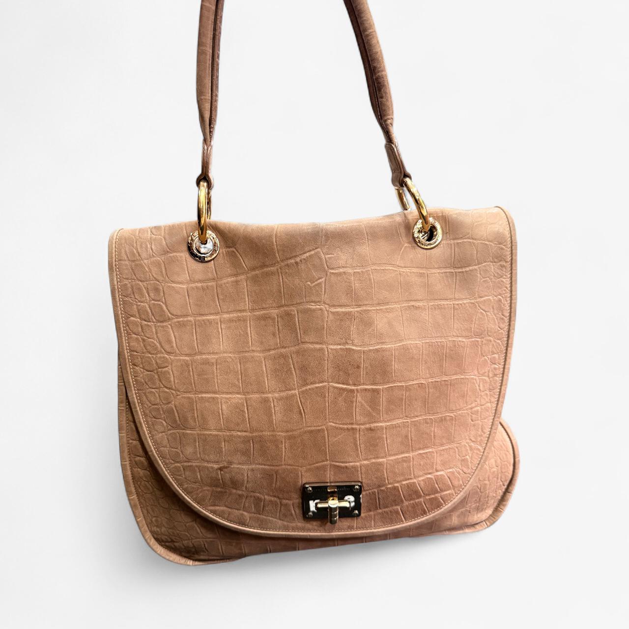 Bež nijansa sa krokodil printom, zlatni detaljiji elegantna kopča- komad koji svaku kombinaciju podiže na viši nivo. Prostrana, praktična j istovremeno luksuzna.