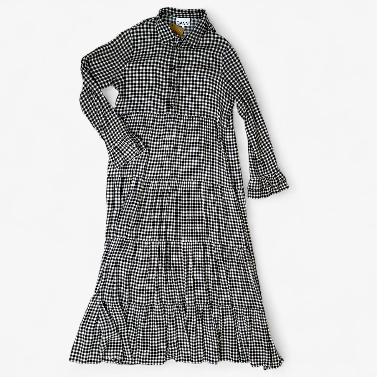 Maxi crno-bela karirana haljina brenda Ganni
