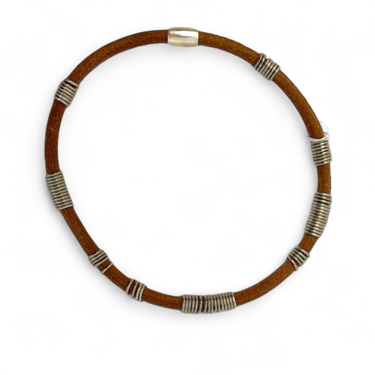 Kožni choker braon boje sa metalnim alkama.