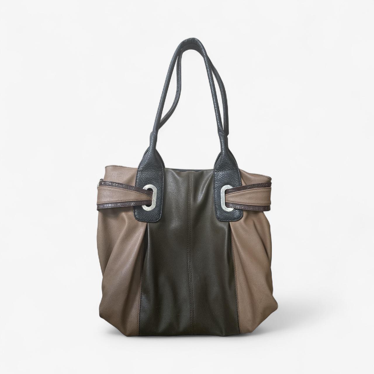 Velika vintage torba u kombinaciji braon i maslinastih tonova - praktična, ali i dovoljno posebna da se uklopi u svaki dnevni outfit. Idealna za one dane kada ti treba prostor za sve što nosiš sa sobom.