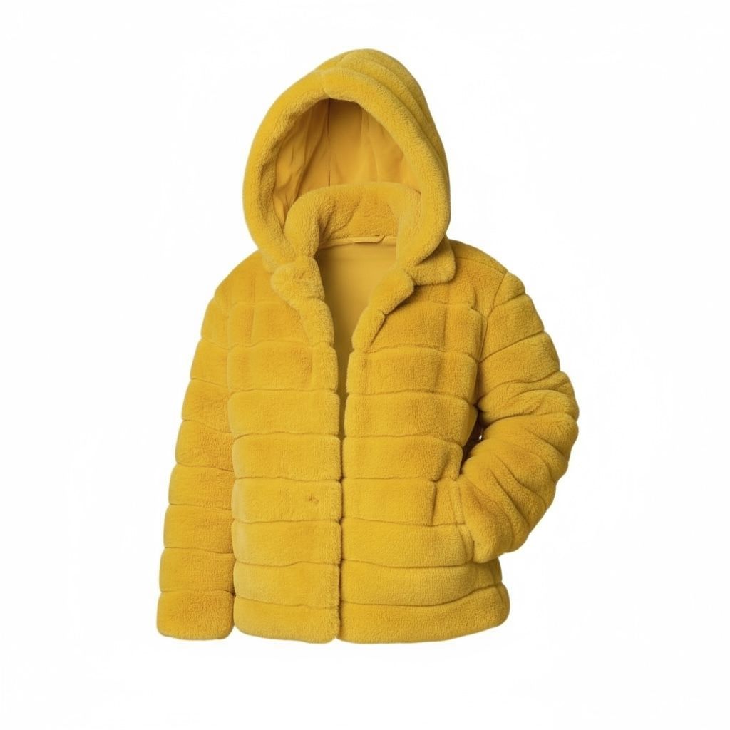 Žuta masivna bunda od veštackog krzna sa kapuljačom💫